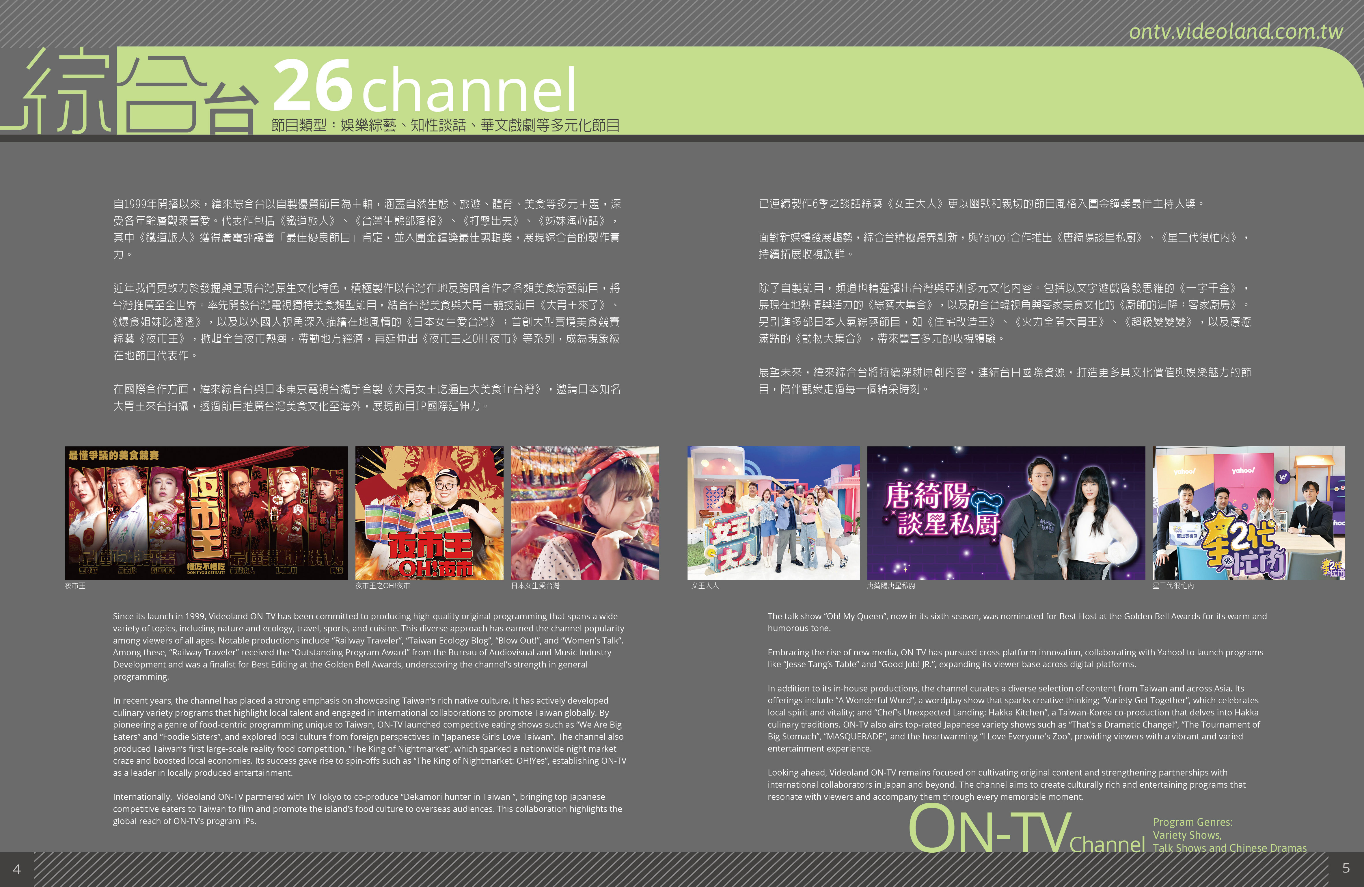 自1999年開播以來,緯來綜合台以自製優質節目為主軸,涵蓋自然生態、旅遊、體育、美食等多元主題,深受各年齡層觀眾喜愛。代表作包括《鐵道旅人》、《台灣生態部落格》、《打擊出去》、《姊妹淘心話》,其中《鐵道旅人》獲得廣電評議會「最佳優良節目」肯定,並入圍金鐘獎最佳剪輯獎,展現綜合台的製作實力。...