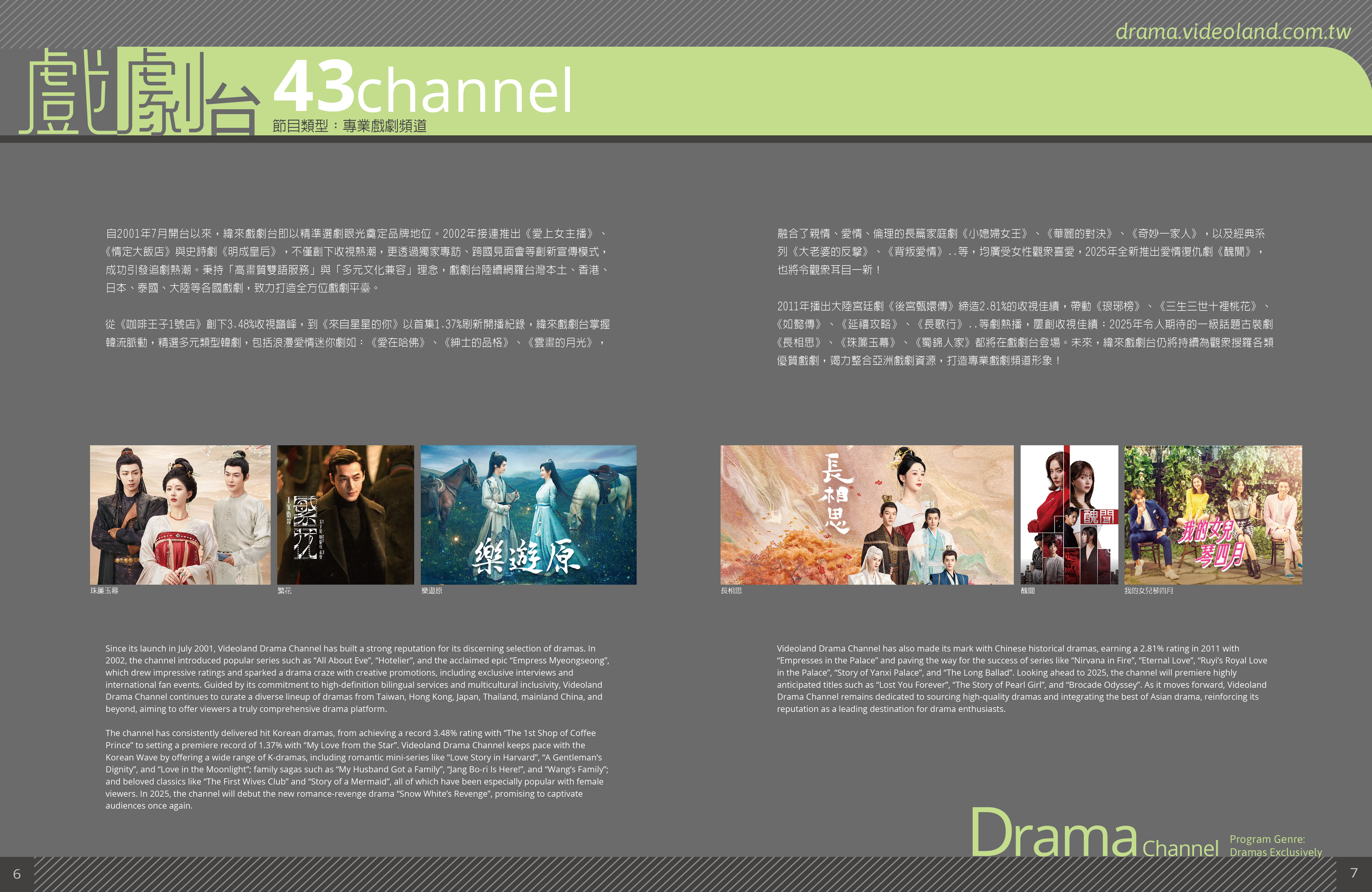 自2001年7月開台以來,緯來戲劇台即以精準選劇眼光奠定品牌地位。2002年接連推出《愛上女主播》、《情定大飯店》與史詩劇《明成皇后》,不僅創下收視熱潮,更透過獨家專訪、跨國見面會等創新宣傳模式,成功引發追劇熱潮。秉持「高畫質雙語服務」與「多元文化兼容」理念,戲劇台陸續網羅台灣本土、香港、日本、泰國、大陸等各國戲劇,致力打造全方位戲劇平臺。...