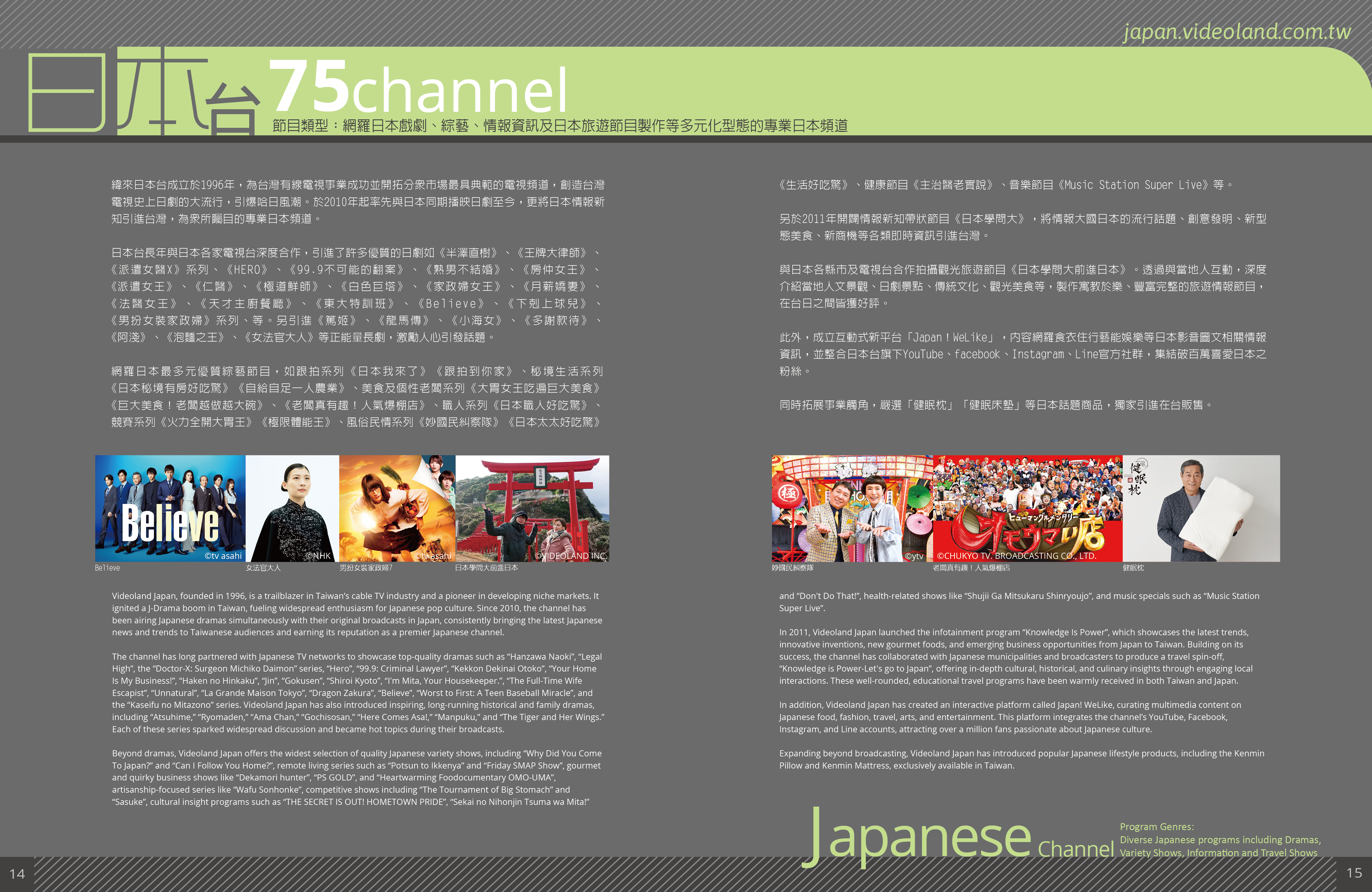緯來日本台成立於1996年,為台灣有線電視事業成功並開拓分眾市場最具典範的電視頻道,創造台灣電視史上日劇的大流行,引爆哈日風潮。於2010年起率先與日本同期播映日劇至今,更將日本情報新知引進台灣,為眾所矚目的專業日本頻道。日本台長年與日本各家電視台深度合作,引進了許多優質的日劇如《半澤直樹》、《王牌大律師》、《派遣女醫X》系列、《HERO》...