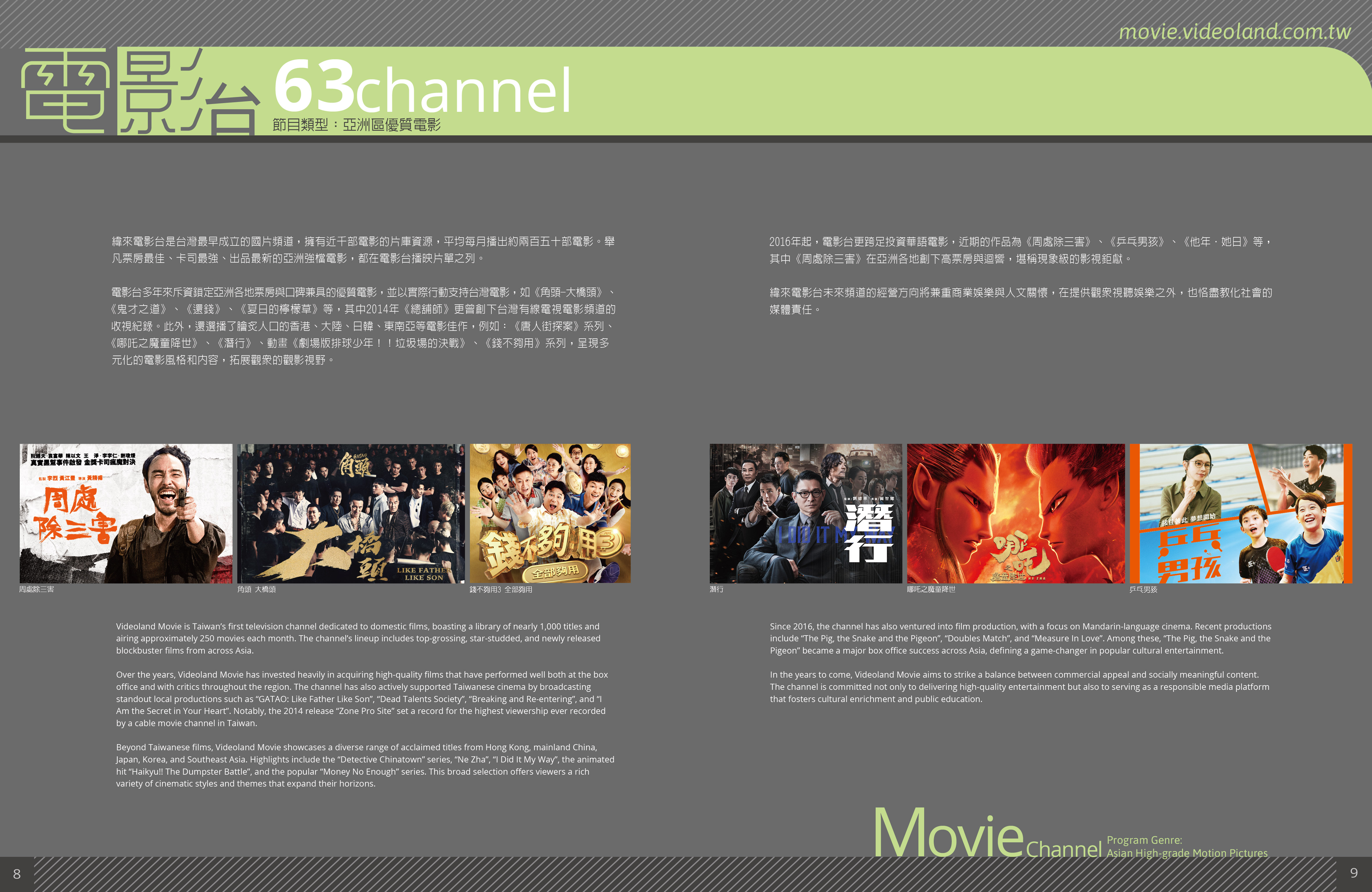 緯來電影台是台灣最早成立的國片頻道,擁有近千部電影的片庫資源,平均每月播出約兩百五十部電影。舉凡票房最佳、卡司最強、出品最新的亞洲強檔電影,都在電影台播映片單之列。電影台多年來斥資鎖定亞洲各地票房與口碑兼具的優質電影,並以實際行動支持台灣電影,如《角頭-大橋頭 》、《鬼才之道 》、《還錢》 、《夏日的檸檬草》 等...
